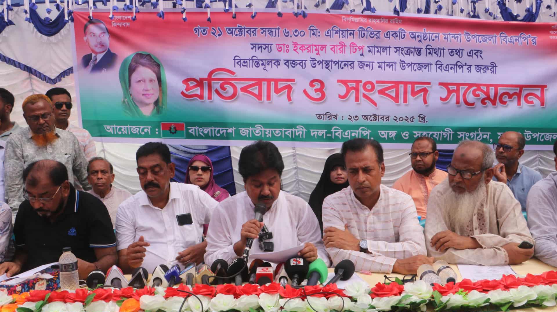 তিনি বলেন, গত ২১ অক্টোবর সন্ধ্যা সাড়ে ৬টায় এশিয়ান টিভির এক অনুষ্ঠানে ডাঃ ইকরামুল বারী টিপু মামলা সংক্রান্ত মিথ্যা তথ্য ও বিভ্রান্তিকর বক্তব্য দিয়েছেন। এ কারণেই মান্দা উপজেলা বিএনপি ও অঙ্গসংগঠনের উদ্যোগে এই জরুরি ‘প্রতিবাদ ও সংবাদ সম্মেলনের’ আয়োজন করা হয়।